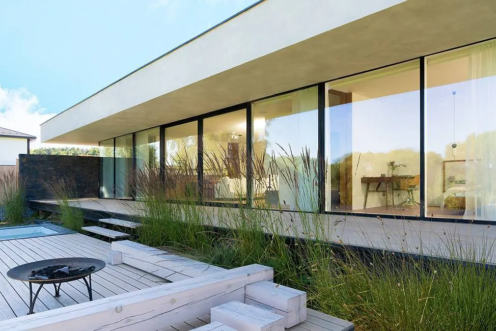 В ассортименте представлено остекление загородных домов и коттеджей. При его производстве используется надежный алюминиевый профиль. Поэтому окна, двери и фасады «АЛЮТЕХ» служат не менее 50 лет.