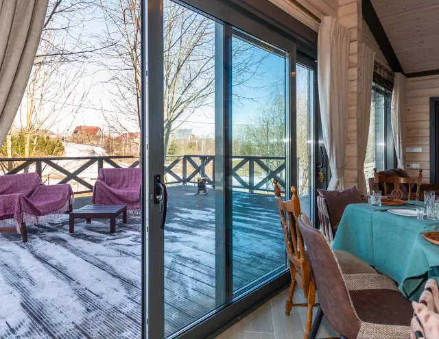 Мы получили проект дома на расчет и предложили несколько вариантов остекления, из них заказчик выбрал оптимальный по стоимости. Сегодня здесь установлены глухие витражи на основе системы ALT W72 и раздвижная стеклянная дверь ALT SL160, которая делает выход на террасу удобным.