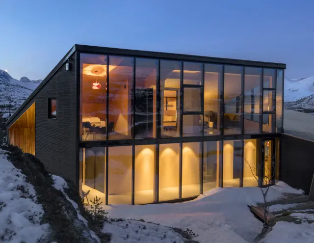 Основным пожеланием заказчика было установить остекление большой площади. И при этом минимизировать теплопотери в холодное время года. В проекте применялось структурное остекление ALT F50 SG с интегрированными фасадными окнами ALT F50 и подъемно-раздвижной конструкцией ALT SL160.