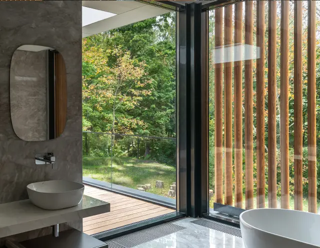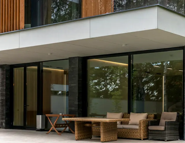 Мы получили запрос на комплексное панорамное остекление из алюминиевого профиля. Согласовали с заказчиком установку оконной системы ALT W72 W, дверной системы ALT W72 D, портальной системы ALT SL160 и фасадной системы ALT F50. Эти решения поддерживают современное оформление дома.