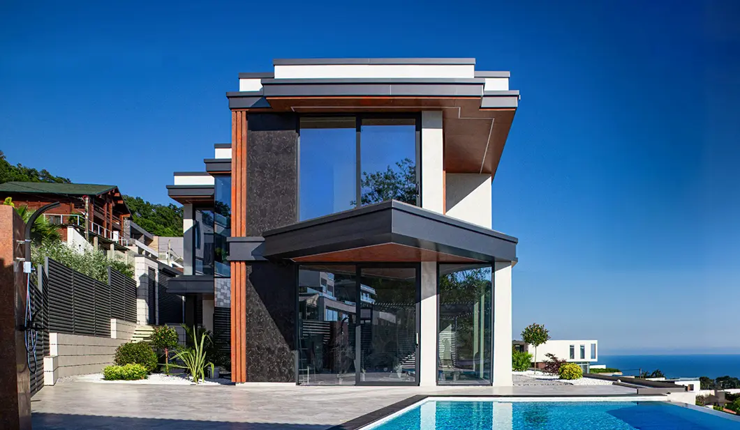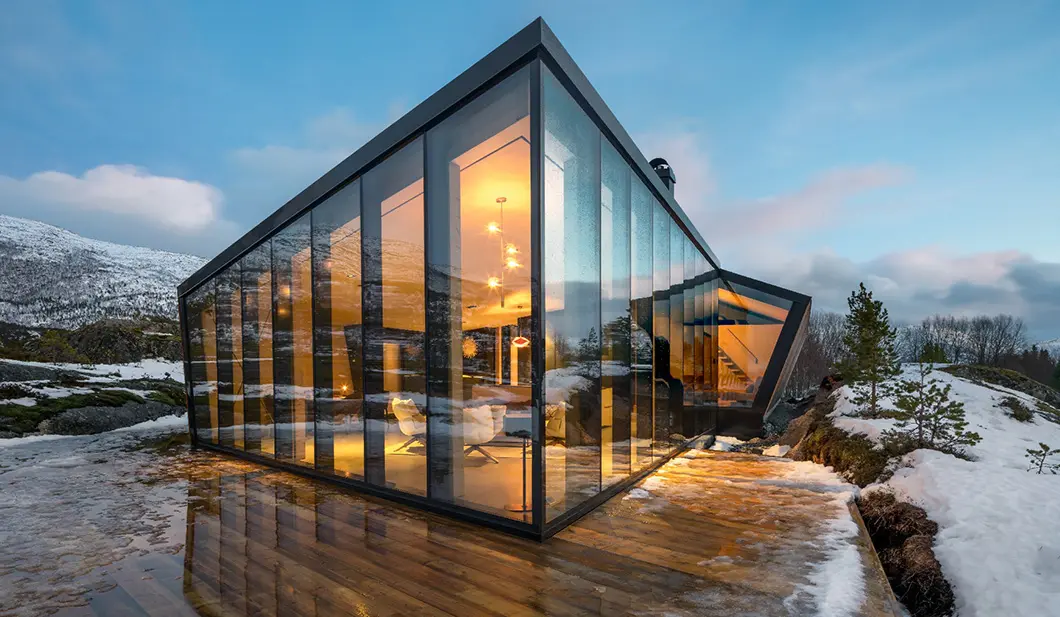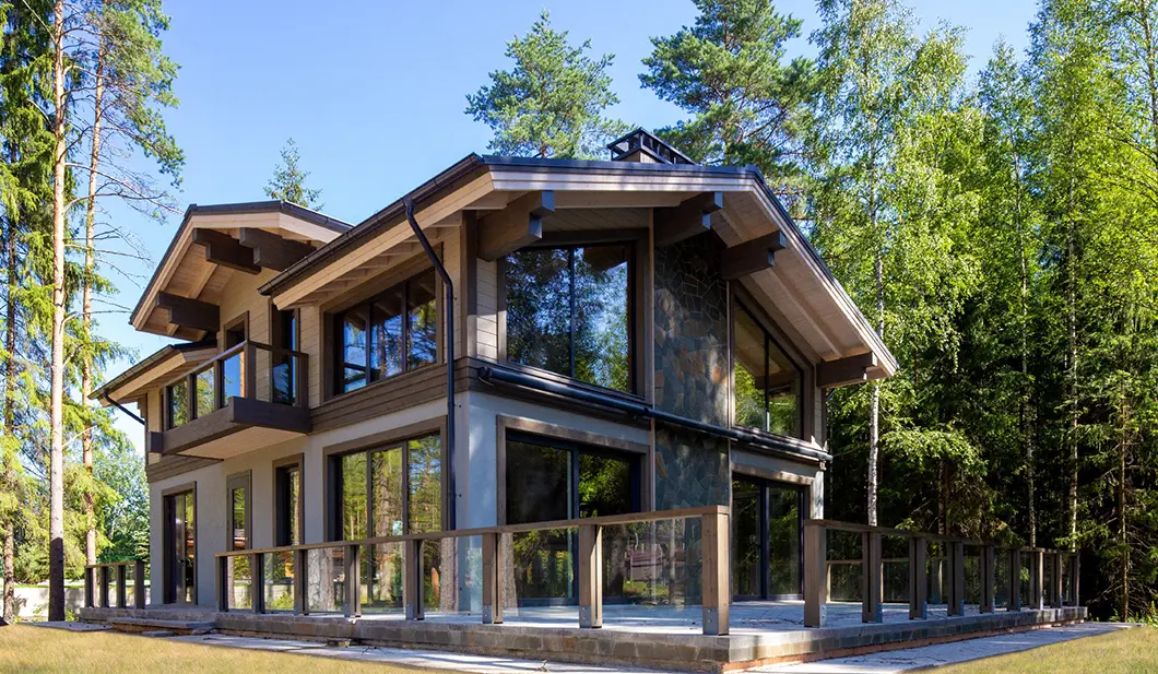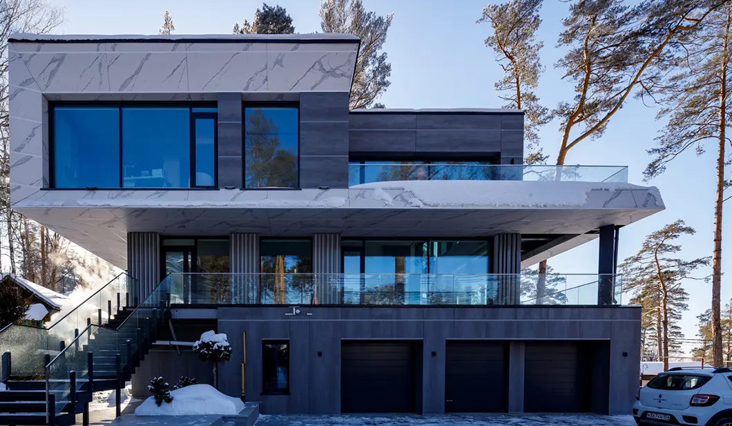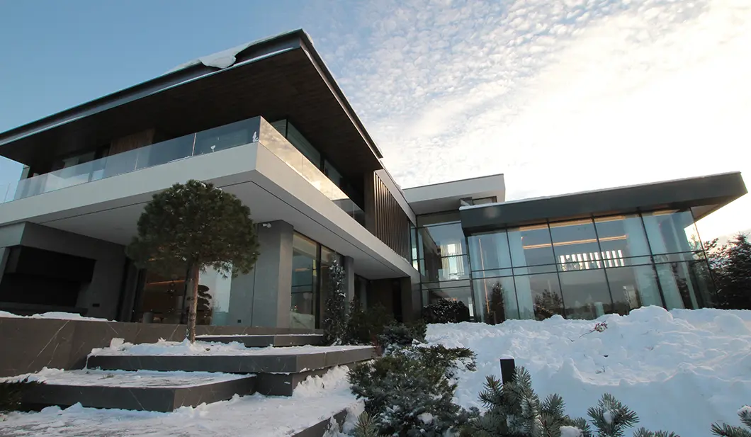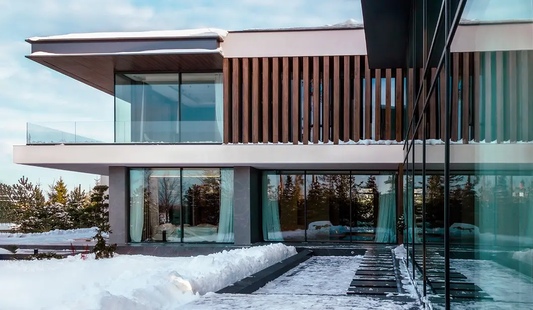 Фасадное остекление дома выглядит стильно и современно. При его производстве используются алюминиевые профили. Поэтому остекление «АЛЮТЕХ» долго служит.